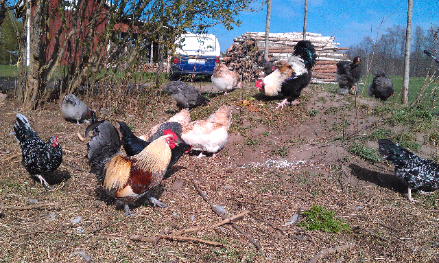Känns så bra när allt i köket kan tas tillvara på. Det som blir över från allt grönt, skal, pasta, bröd mm får hönsen. Det som hönsen inte vill ha hamnar i komposten. Här får hönsen kokta potatiskal som de älskar.